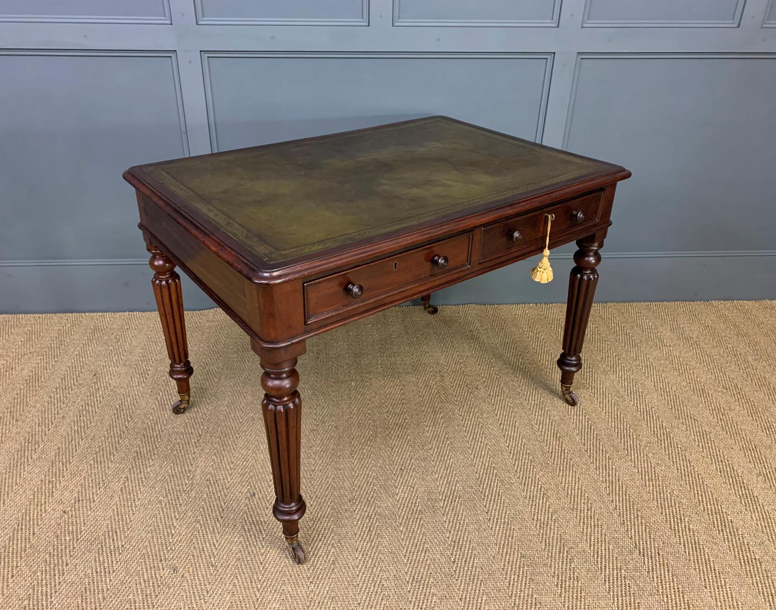 Victorian Mahogany 2 Drawer Reeded Leg Writing Table