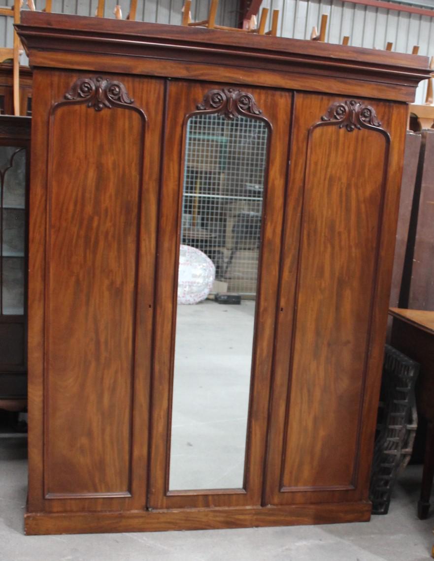 Victorian Mahogany 3 Door Wardrobe with Good Interior and Drawer at Base