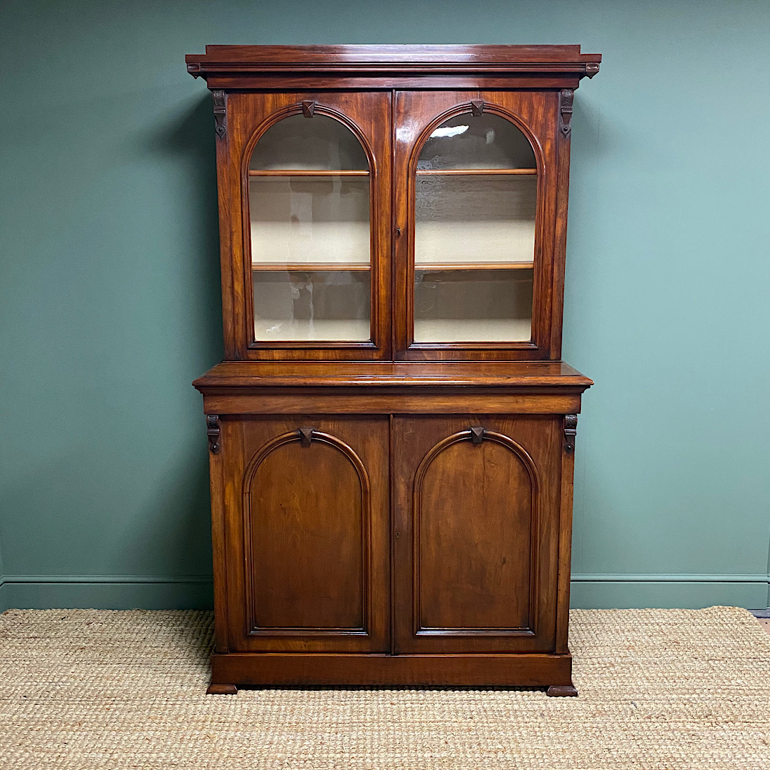 Victorian Mahogany Antique Glazed Bookcase on Cupboard