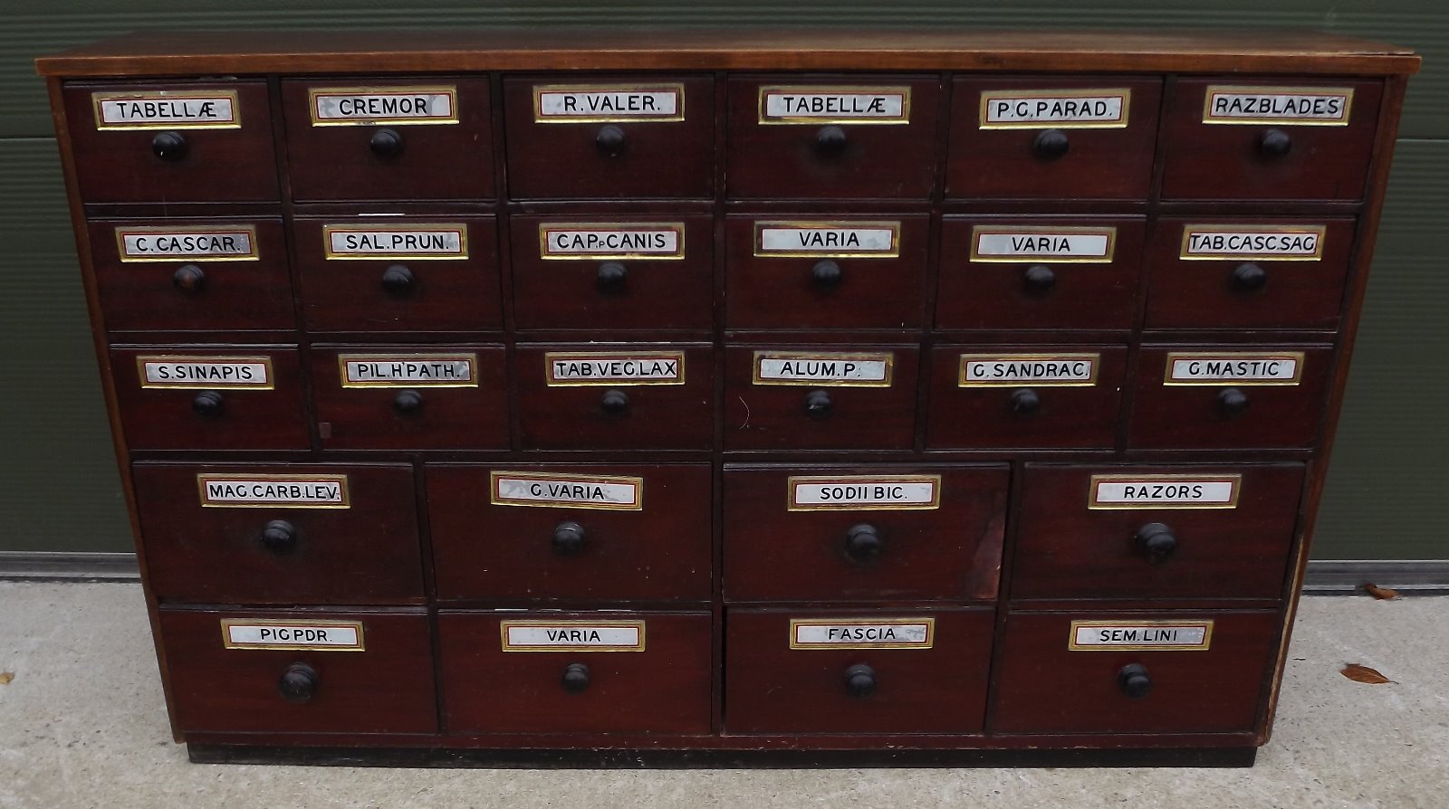 Victorian Mahogany Apothecary Cabinet Drawers with Glass Plaques