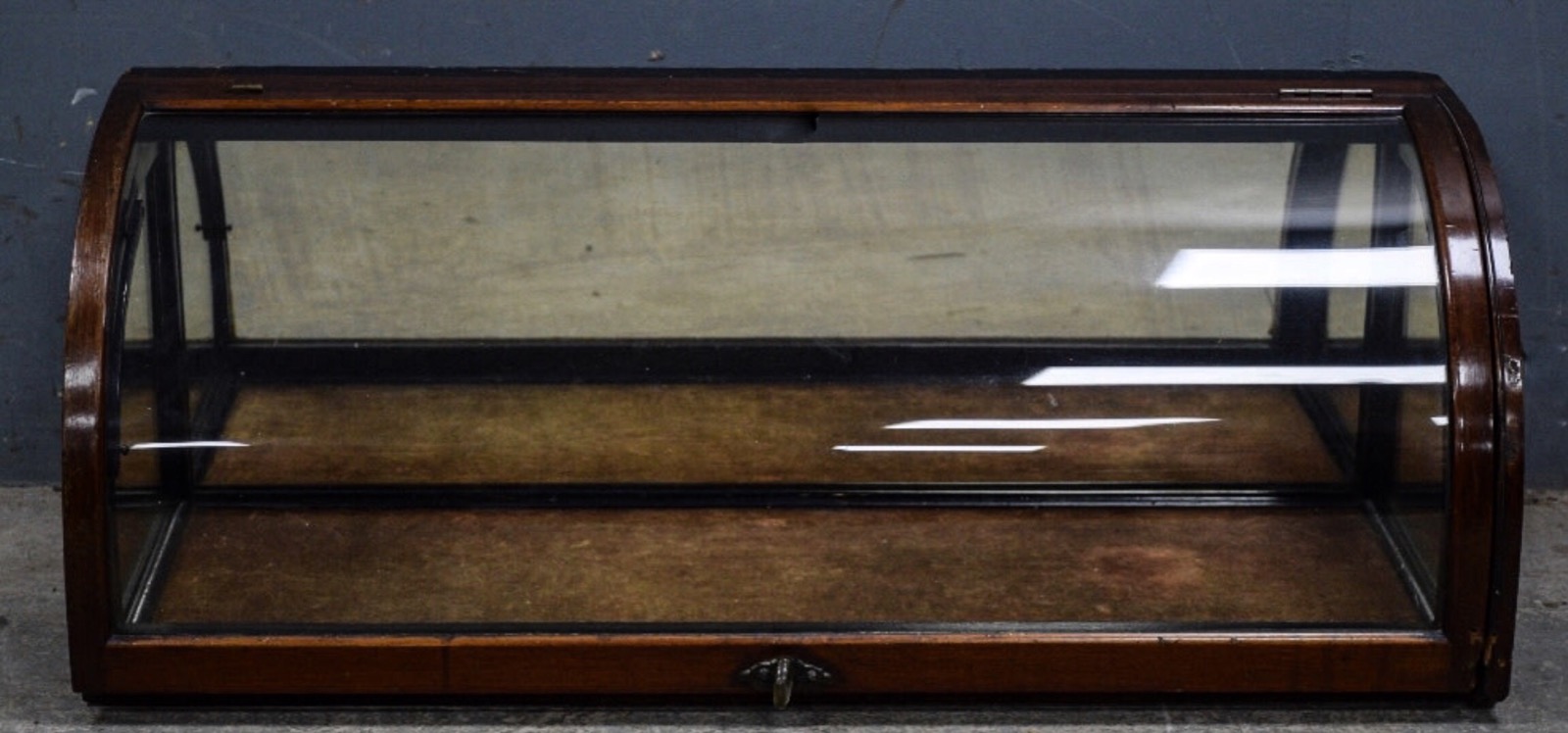 Victorian Mahogany Bow Glass Counter Shop Museum Display Case