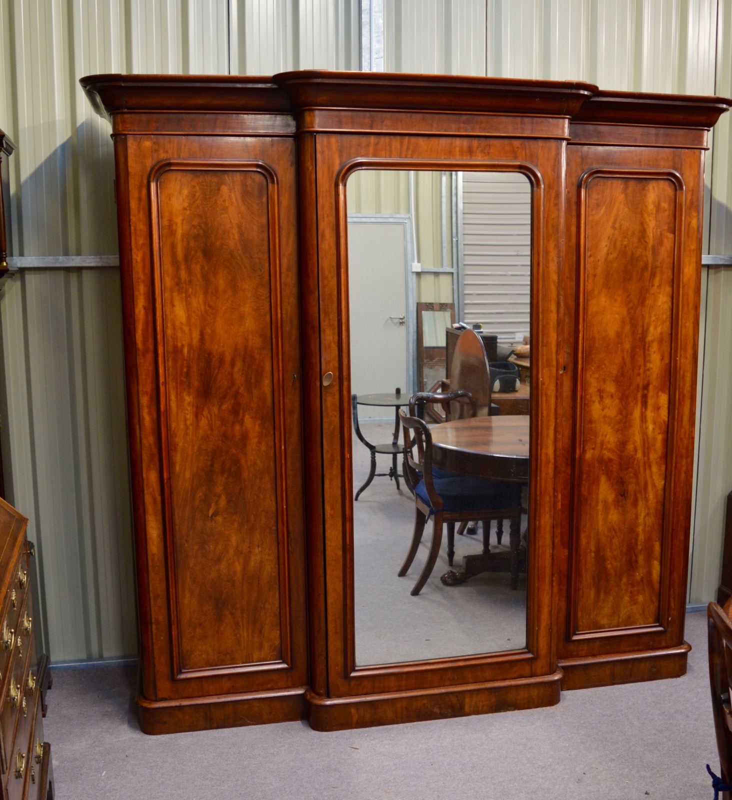 Victorian Mahogany Breakfront Wardrobe Compactum Triple Wardrobe