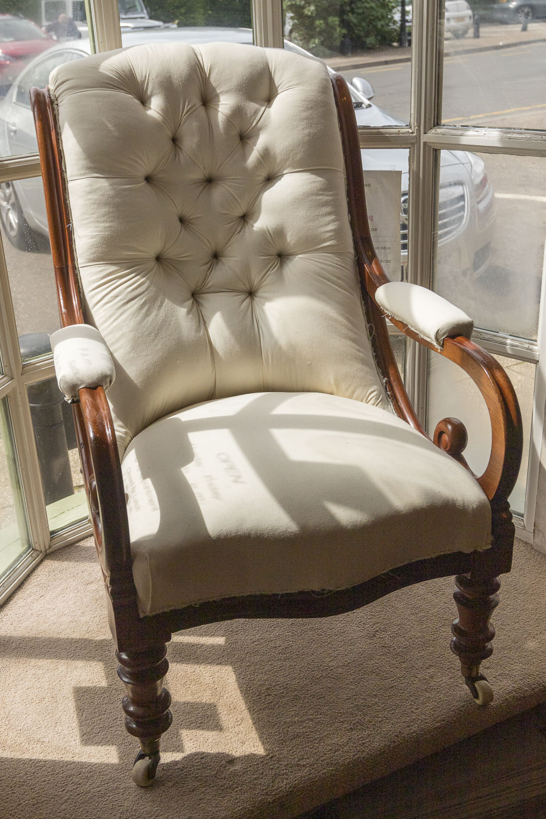 Victorian Mahogany Fireside Chair with Button Upholstery
