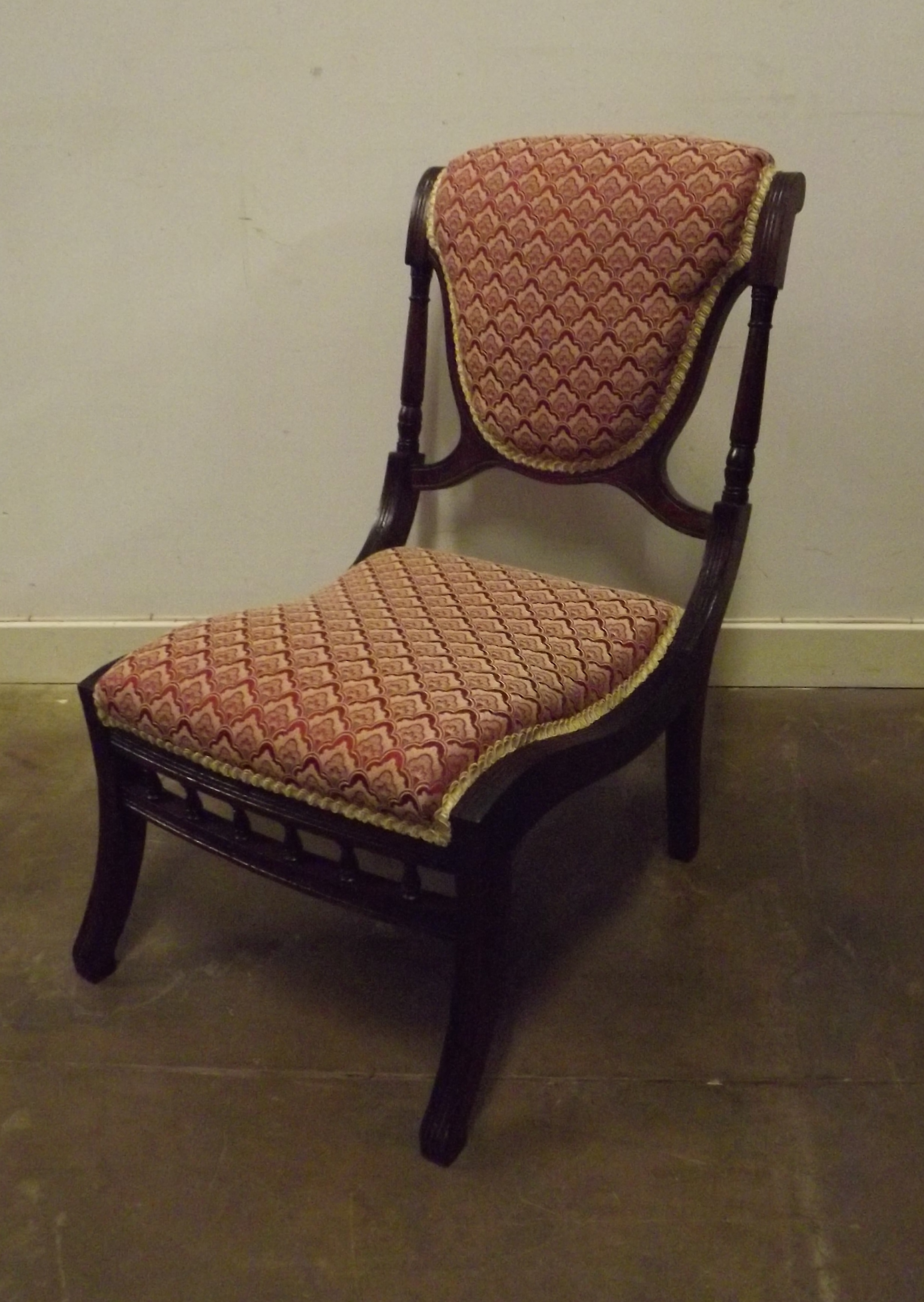 Victorian Mahogany-Framed Upholstered Slipper Chair c.1900