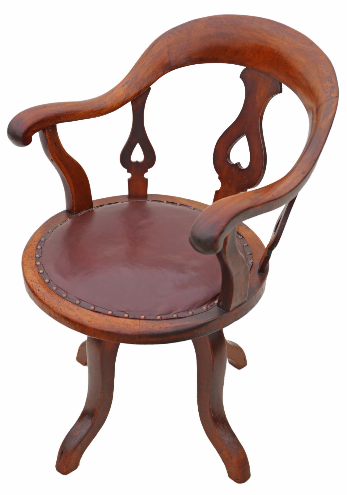 Victorian Mahogany & Leather Desk Office Elbow Swivel Chair