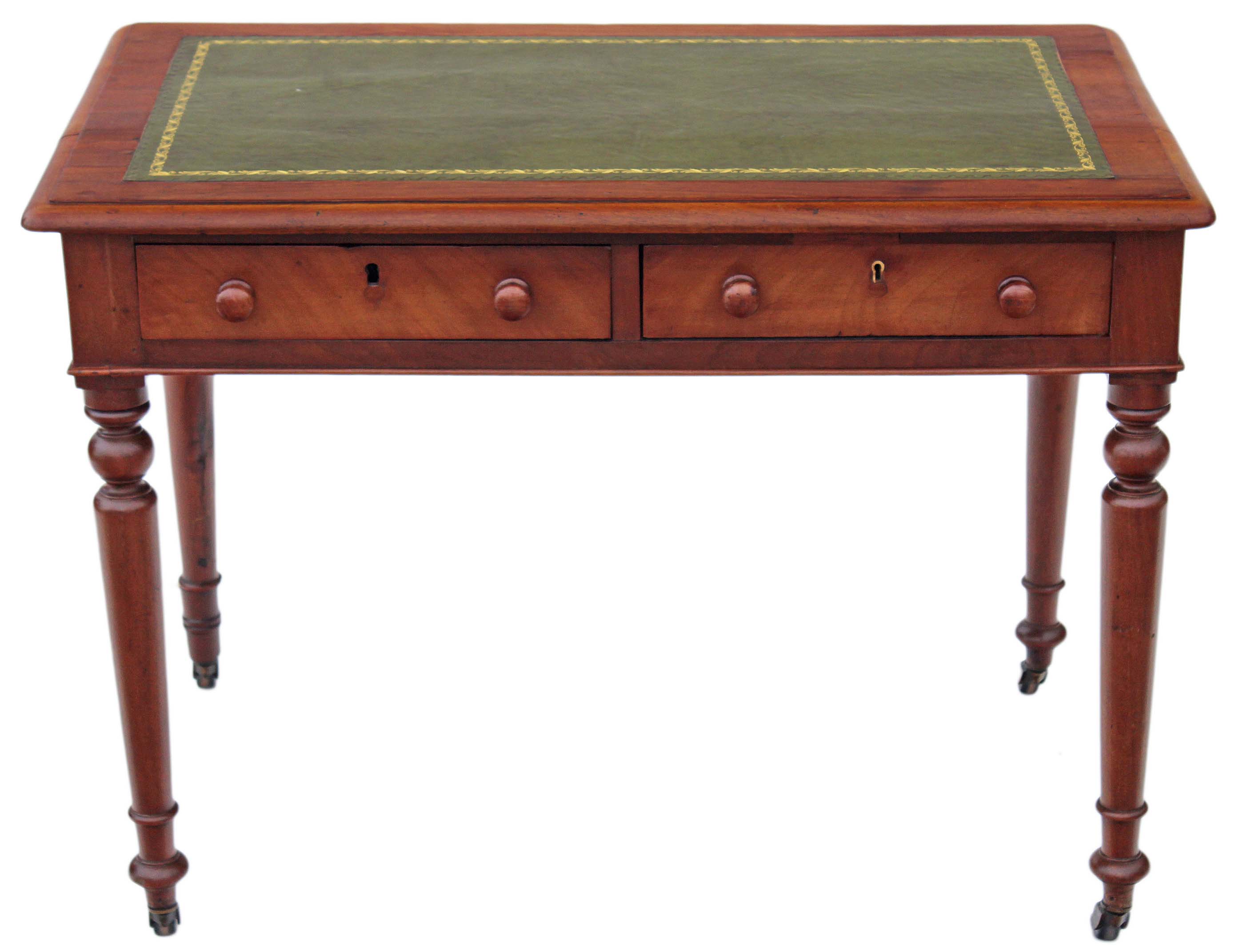 Victorian Mahogany Leather Desk / Writing Table / 2 Drawer Dressing Table