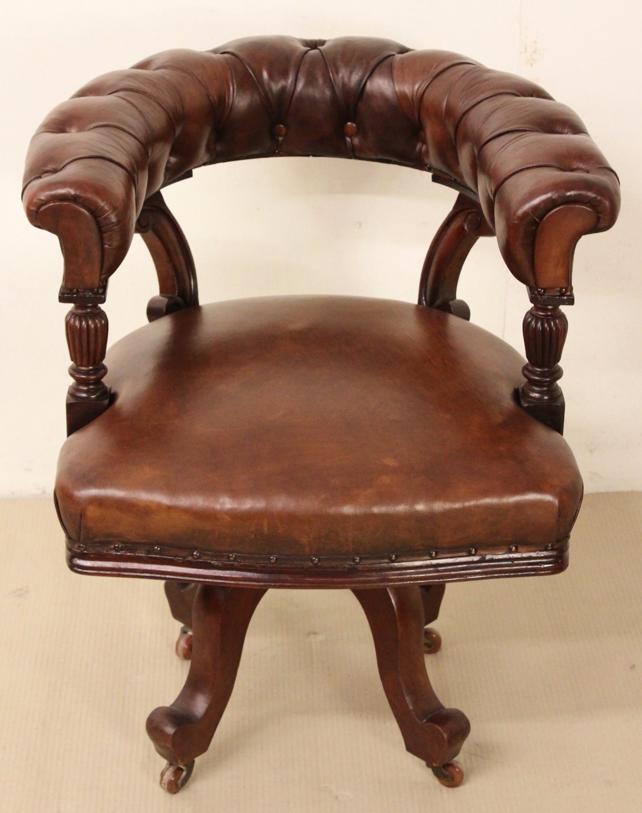 Victorian Mahogany & Leather Revolving Office Chair