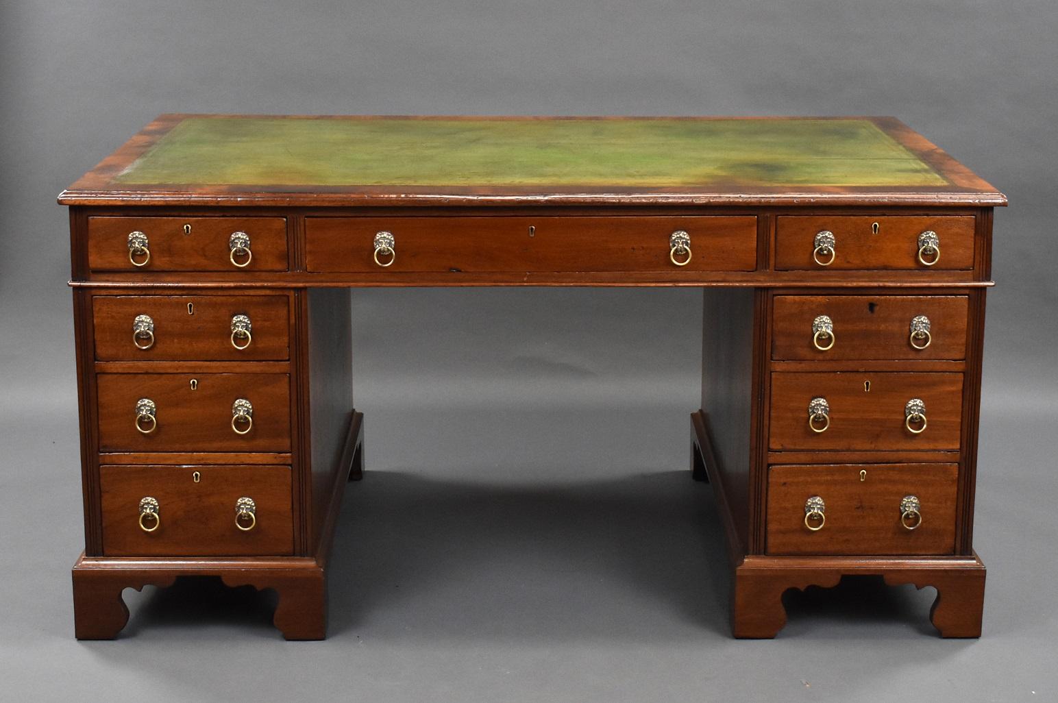 Victorian Mahogany Leather Top Pedestal Desk