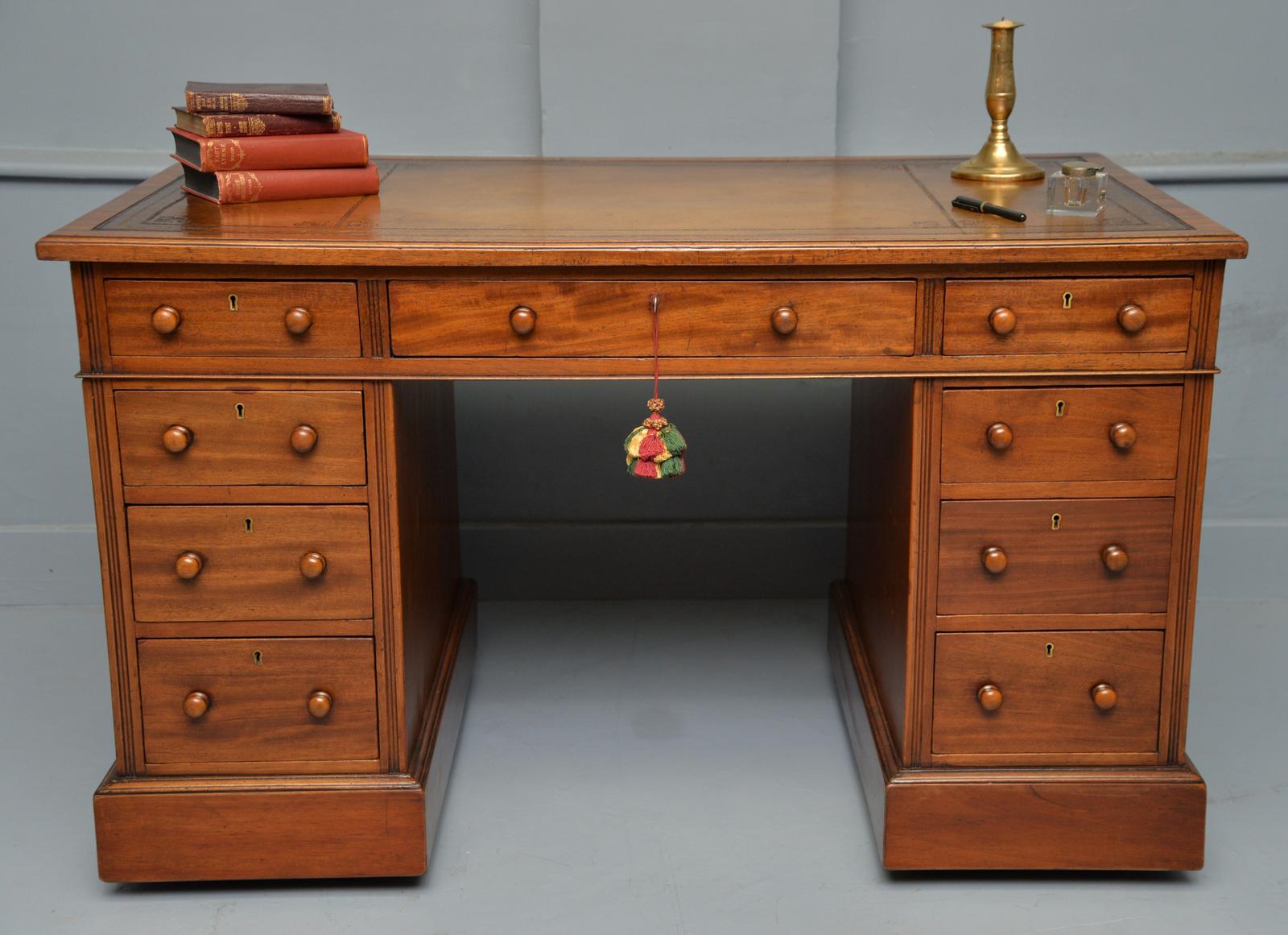 Victorian Mahogany Leather Top Pedestal Desk
