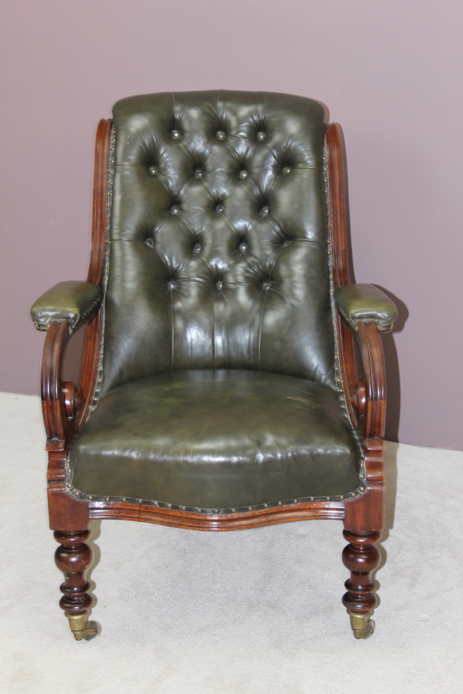 Victorian Mahogany Library Chair in Deep Buttoned Leather