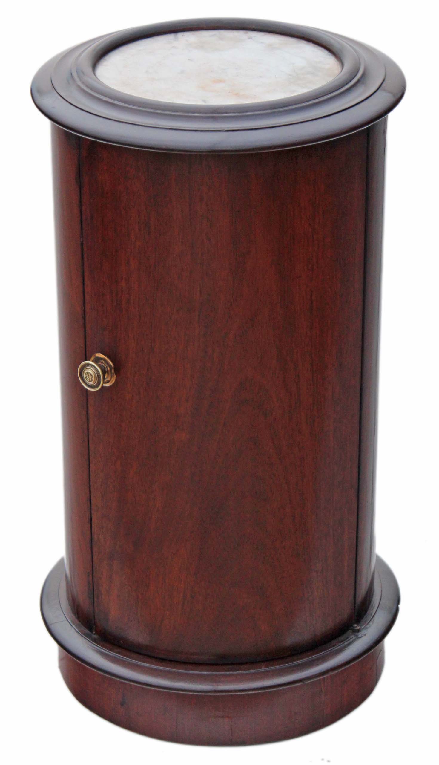 Victorian Mahogany Marble Cylinder Bedside Cupboard / Table Cabinet