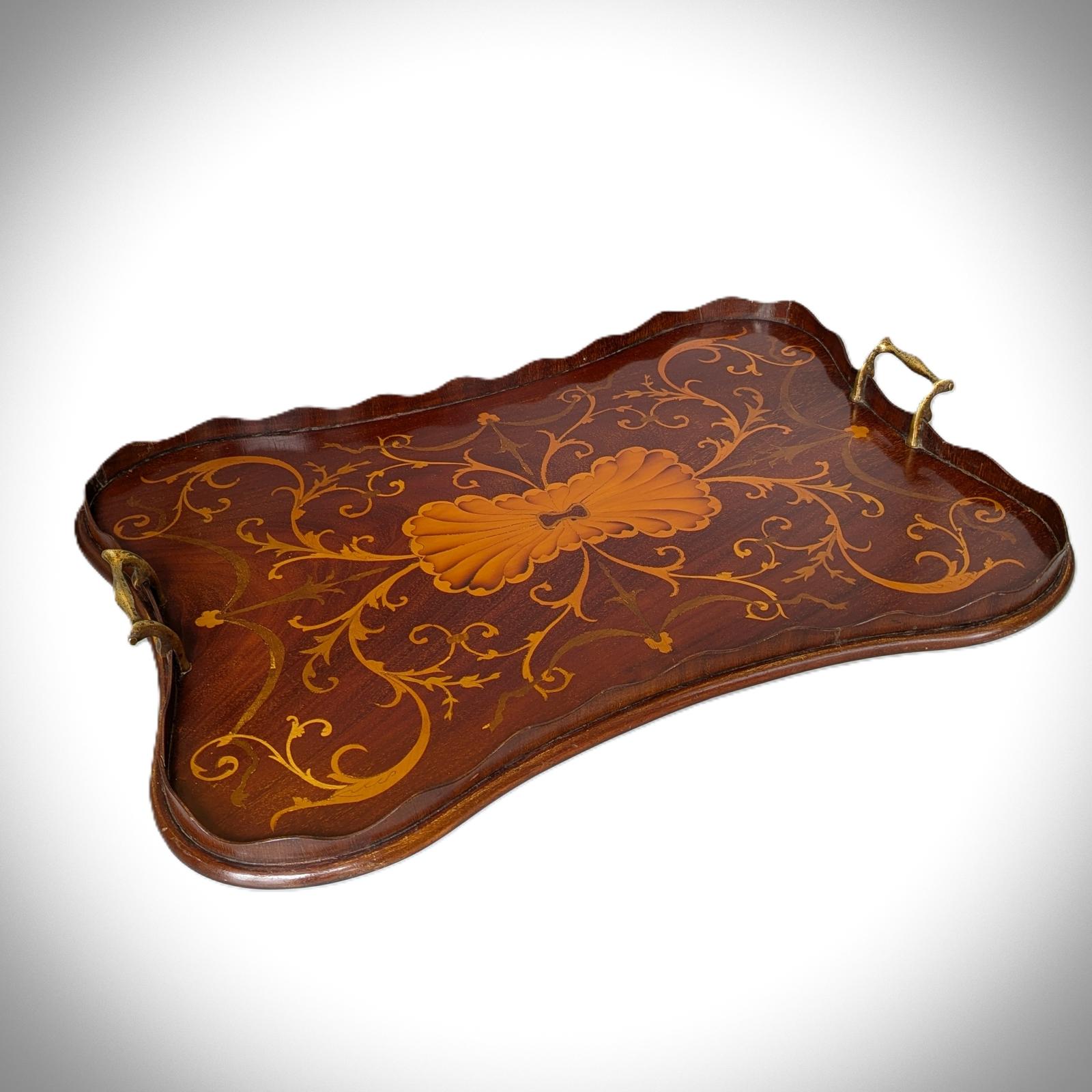 Victorian Mahogany & Marquetry Inlaid Serving Tray