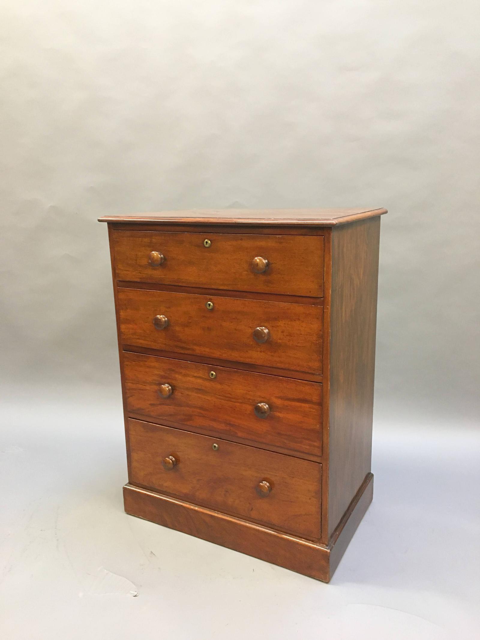 Victorian mahogany narrow chest, labelled