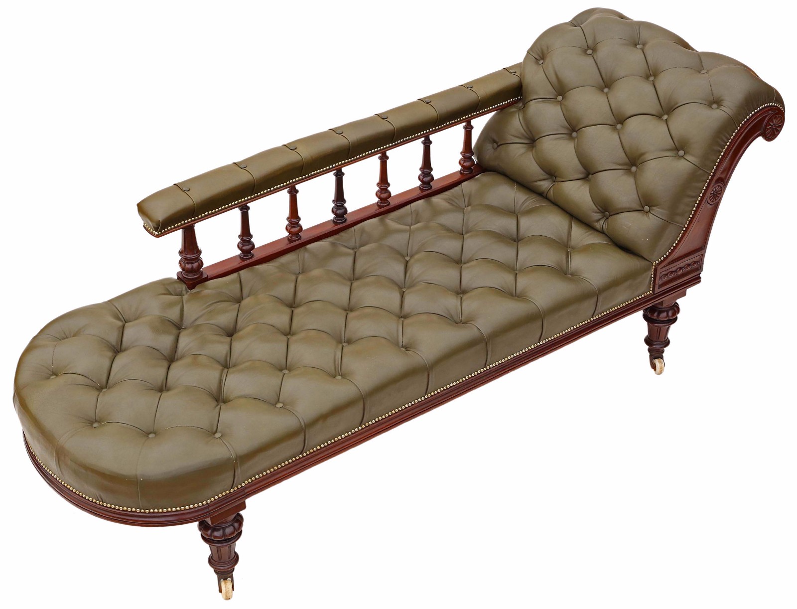 Victorian Mahogany Olive Leather Chaise Longue Sofa c.1880 (1 of 1)