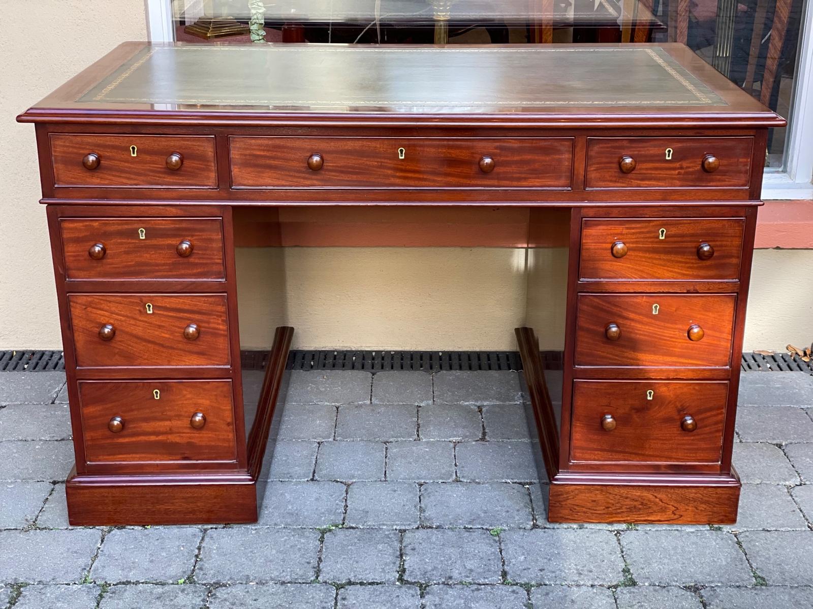 Victorian Mahogany Pedestal Desk, Stamped Graygoose