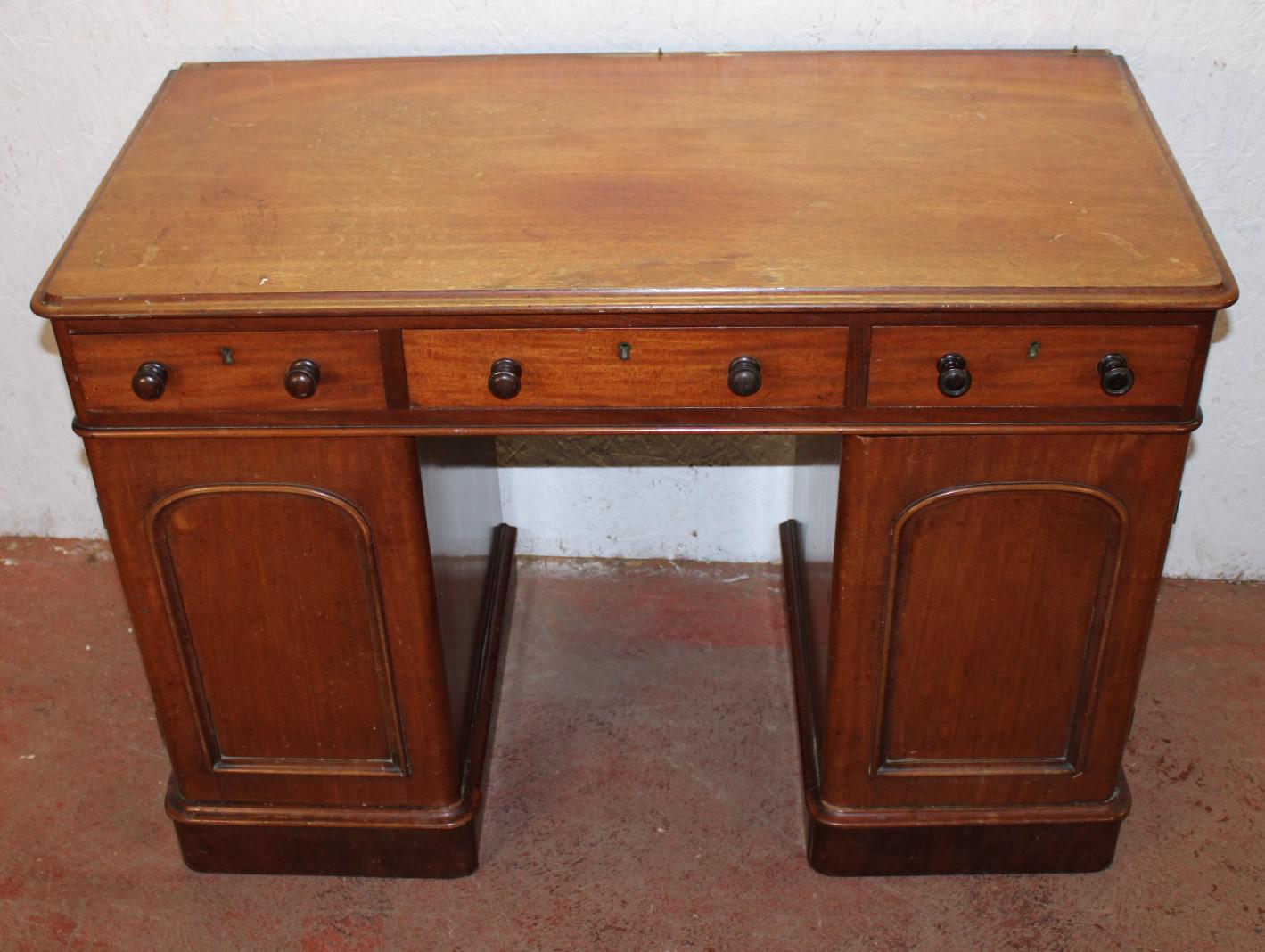 Victorian Mahogany Pedestal Desk with Mahogany Top