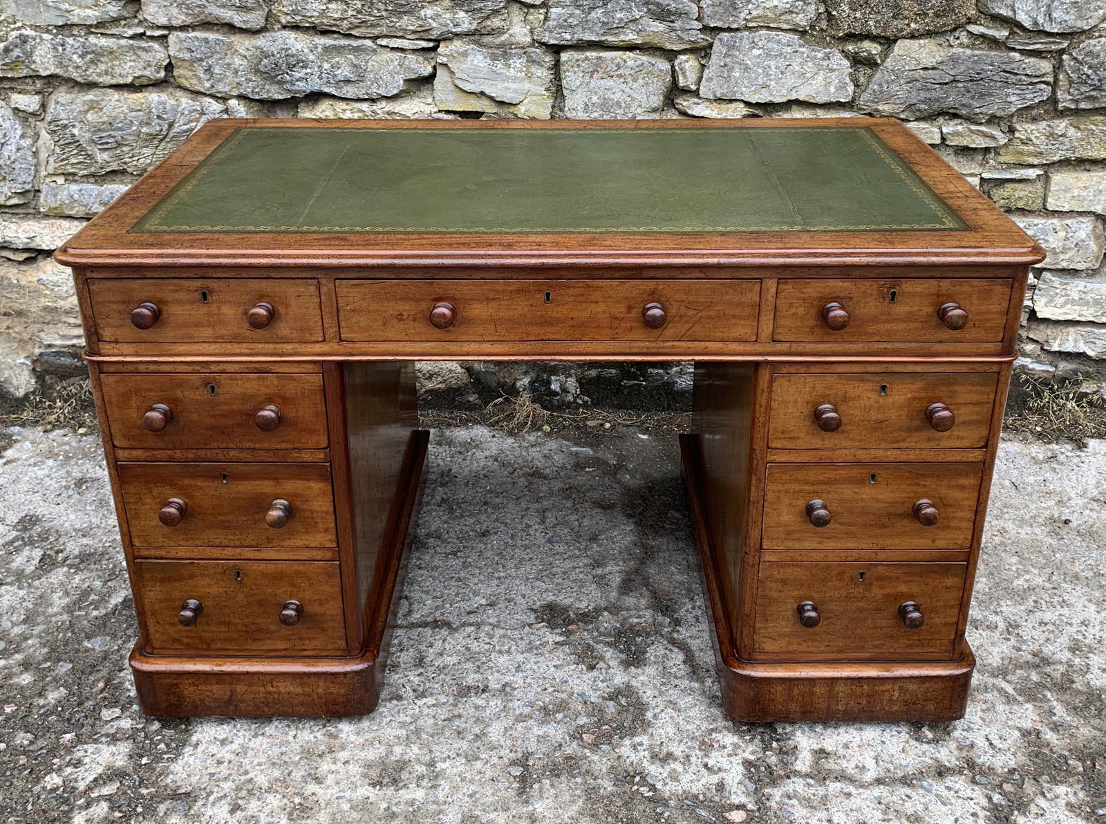 Victorian Mahogany Pedestal Writing Desk with Leather Top