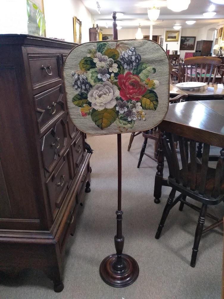 Victorian Mahogany Pole Screen Late 1800s