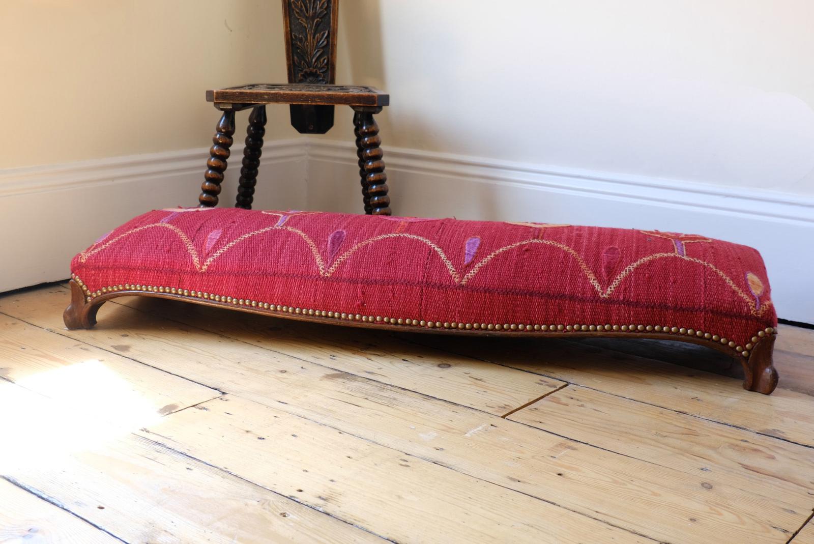 Victorian Mahogany Serpentine Kelim Covered Foot Stool