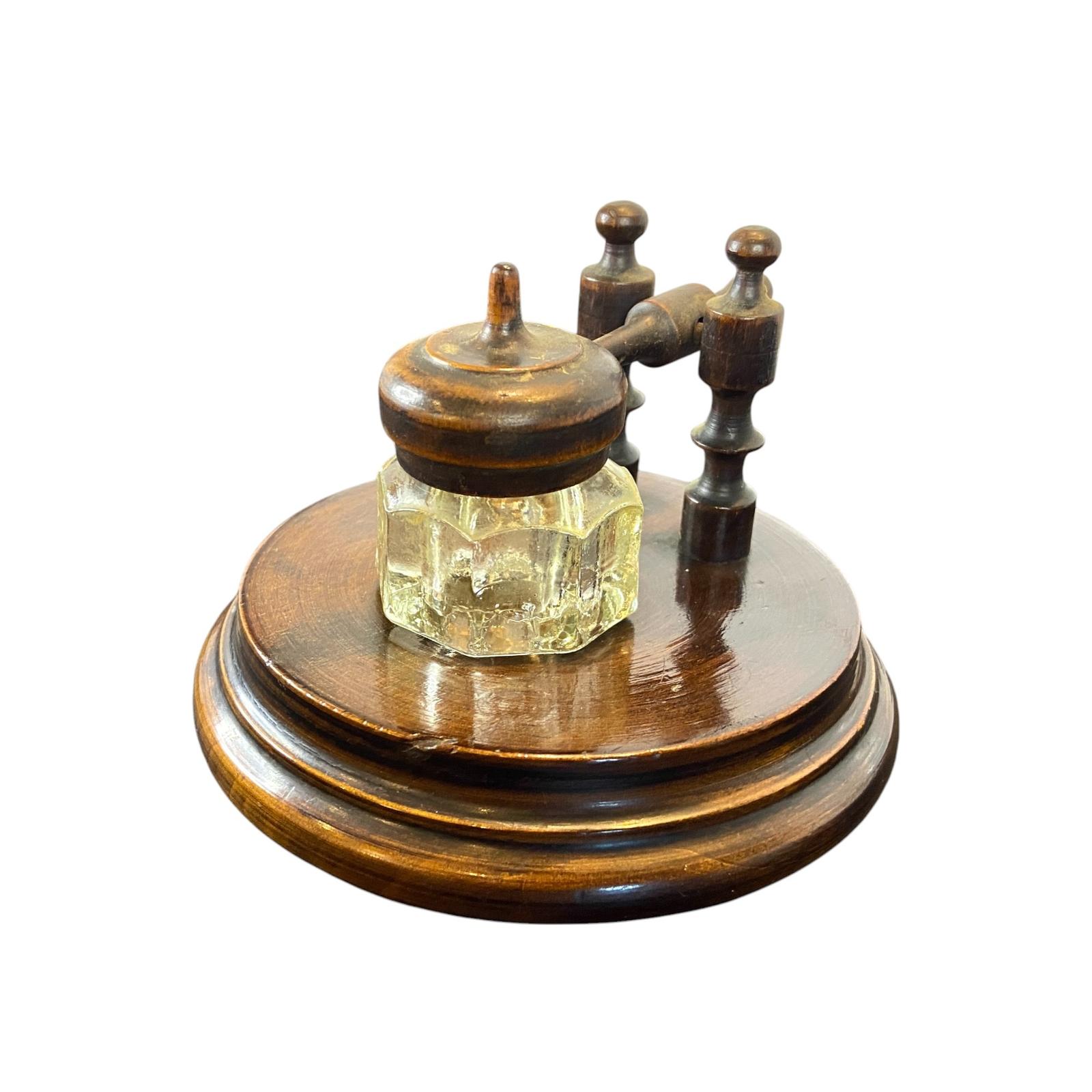 Victorian Mahogany Single Glass Pot Desk Inkwell c.1900