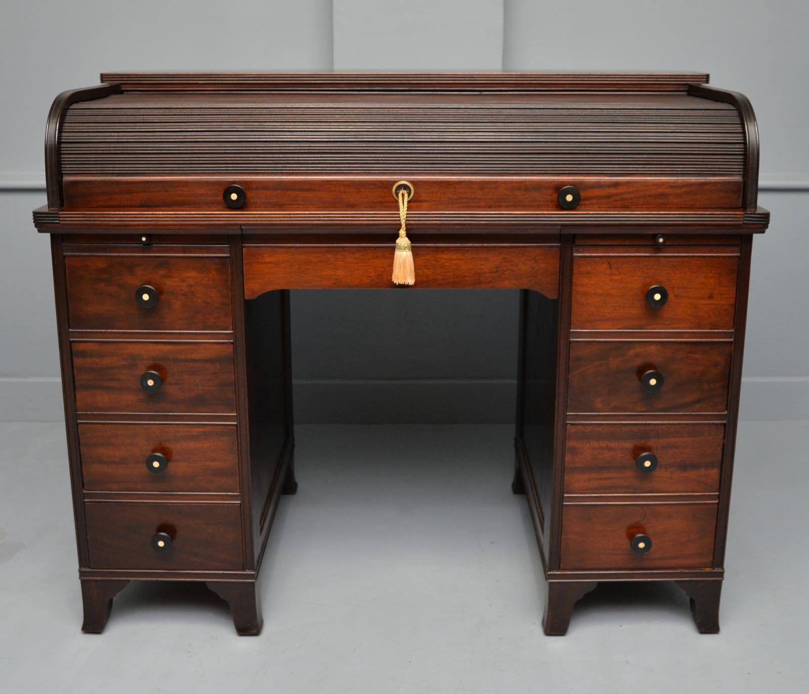 Victorian Mahogany Tambour Roll Top Cylinder Desk
