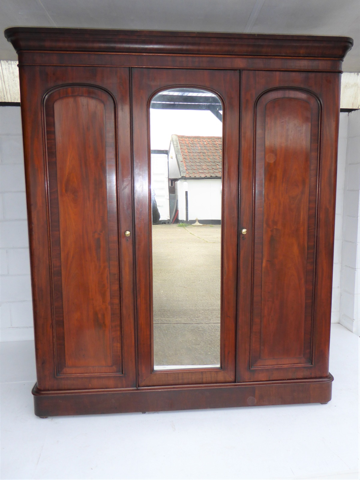 Victorian Mahogany Three Door Wardrobe / Linen Press / Compactum