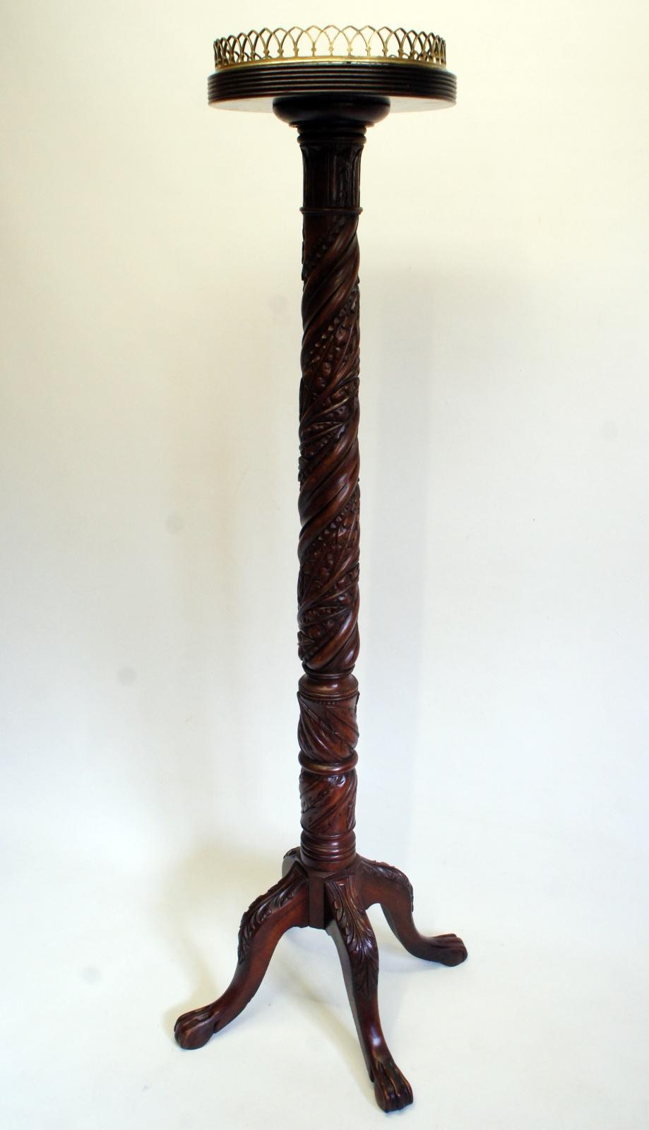 Victorian Mahogany Torchiere Plant Stand, Foliate Carved