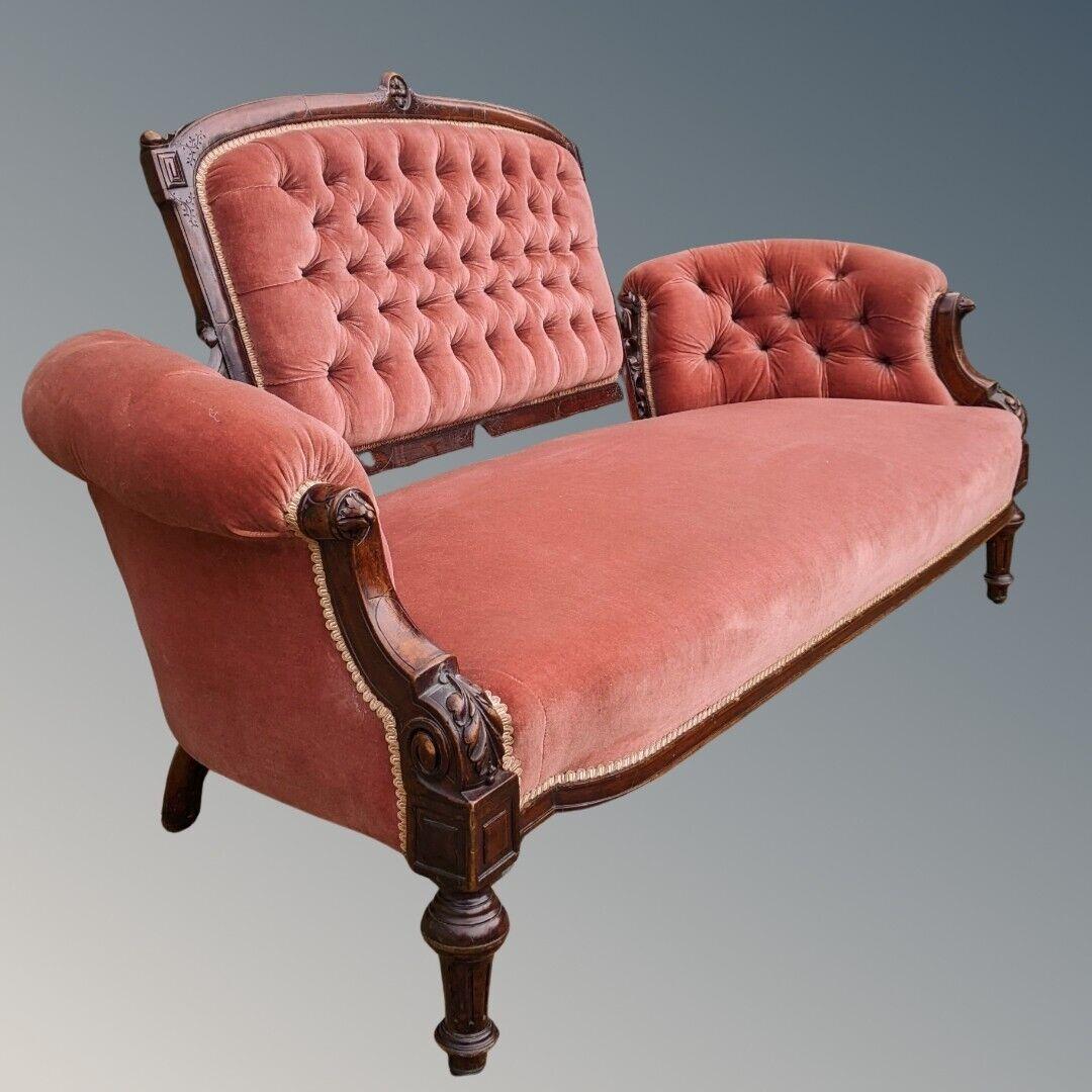 Victorian Mahogany & Velvet Sofa (1 of 8)