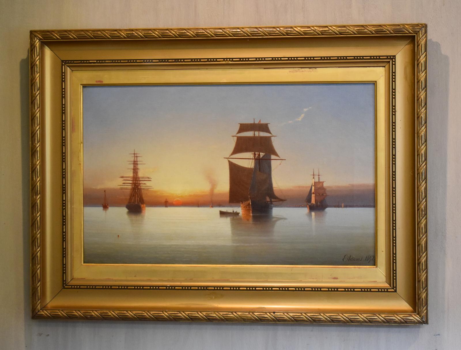 Victorian Marine Oil Painting by Edward Adams