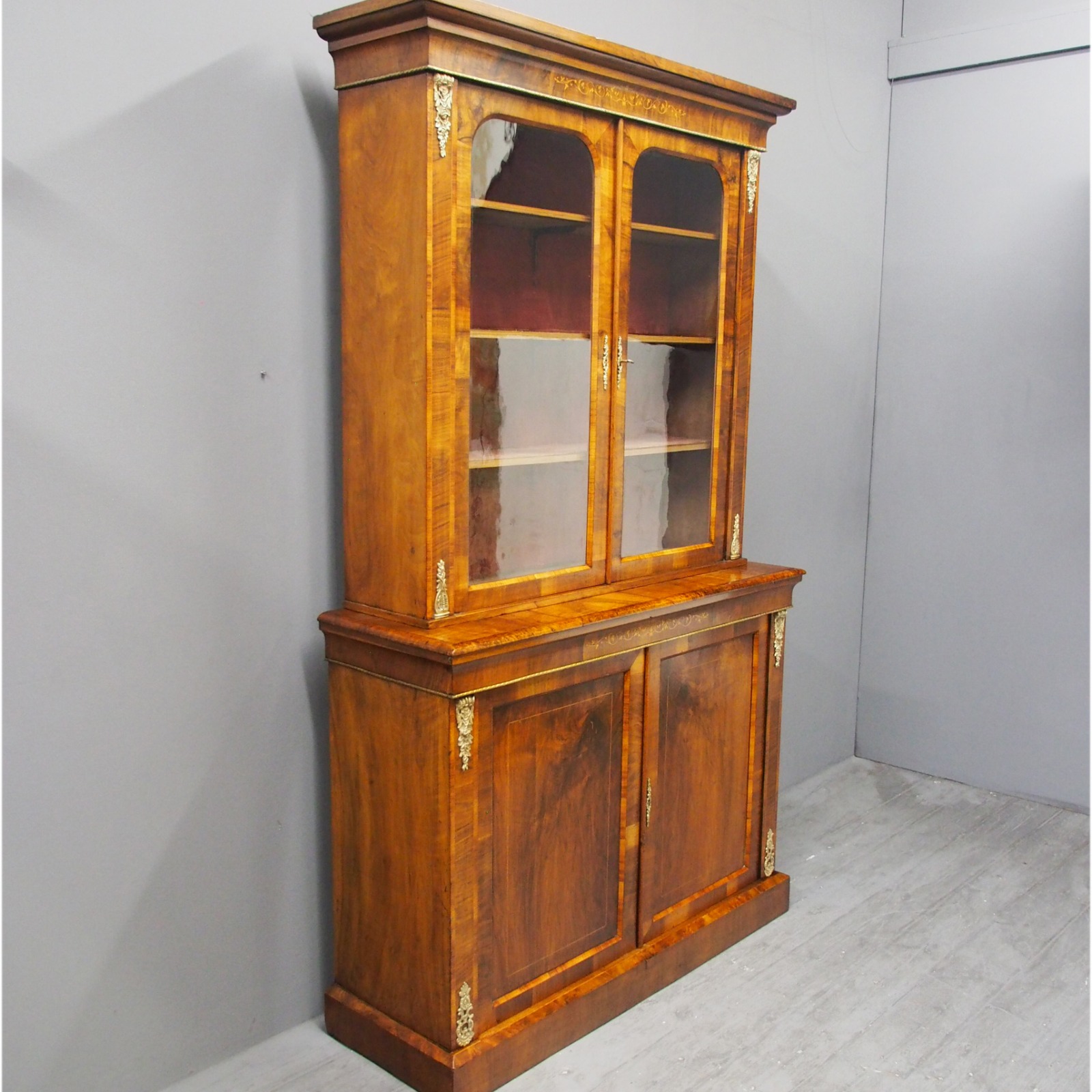 Victorian Marquetry Walnut Cabinet Bookcase (1 of 12)