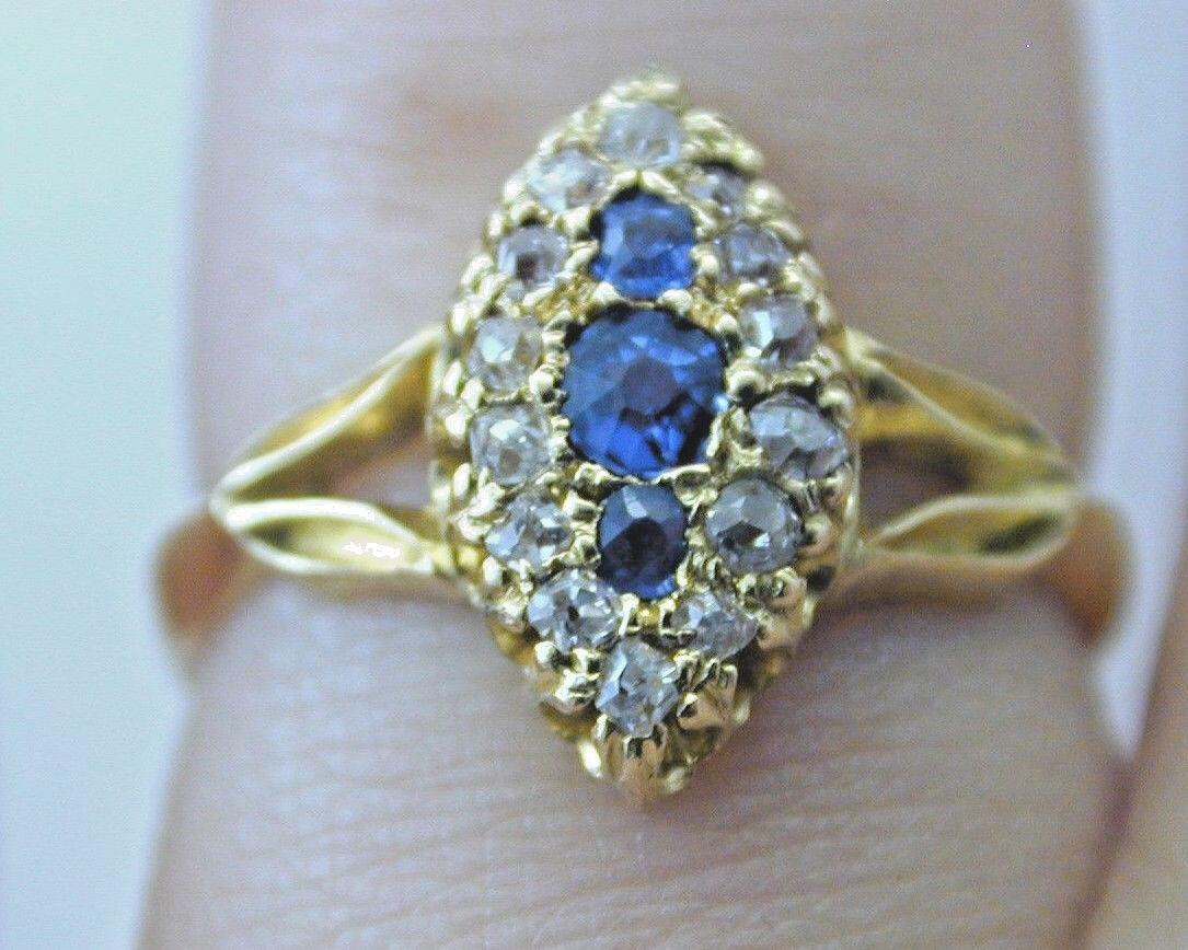 Victorian Marquise Sapphire and Old Mine Diamond Ring