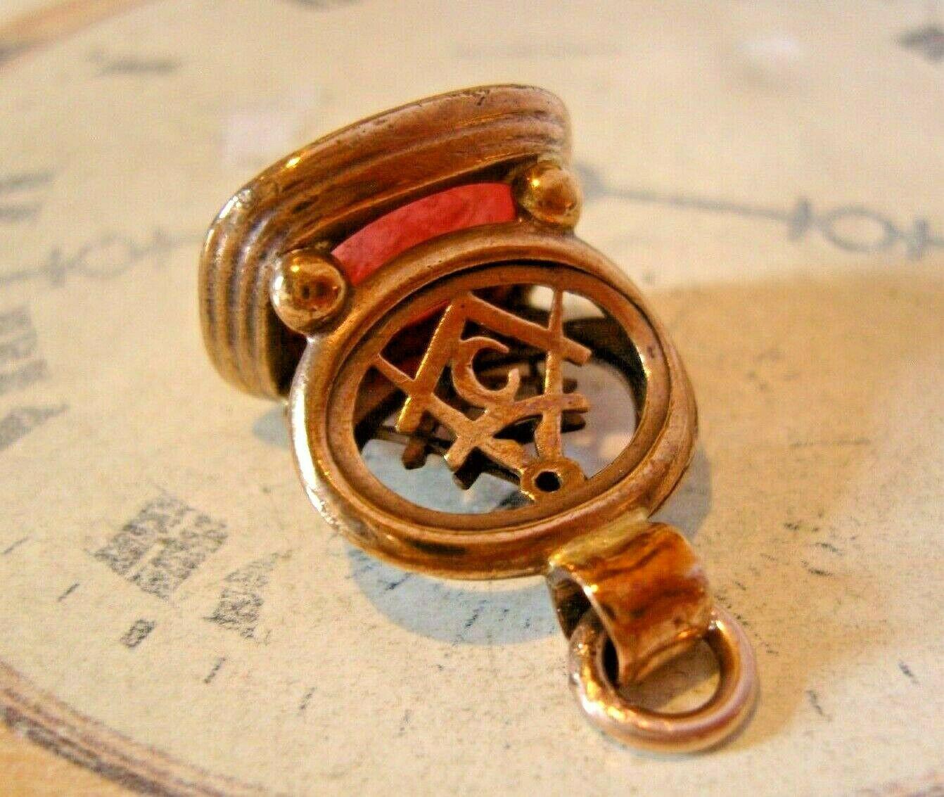 Victorian Masonic Pocket Watch Chain Fob 1890s Antique Rose Gilt & Carnelian Stone Fob