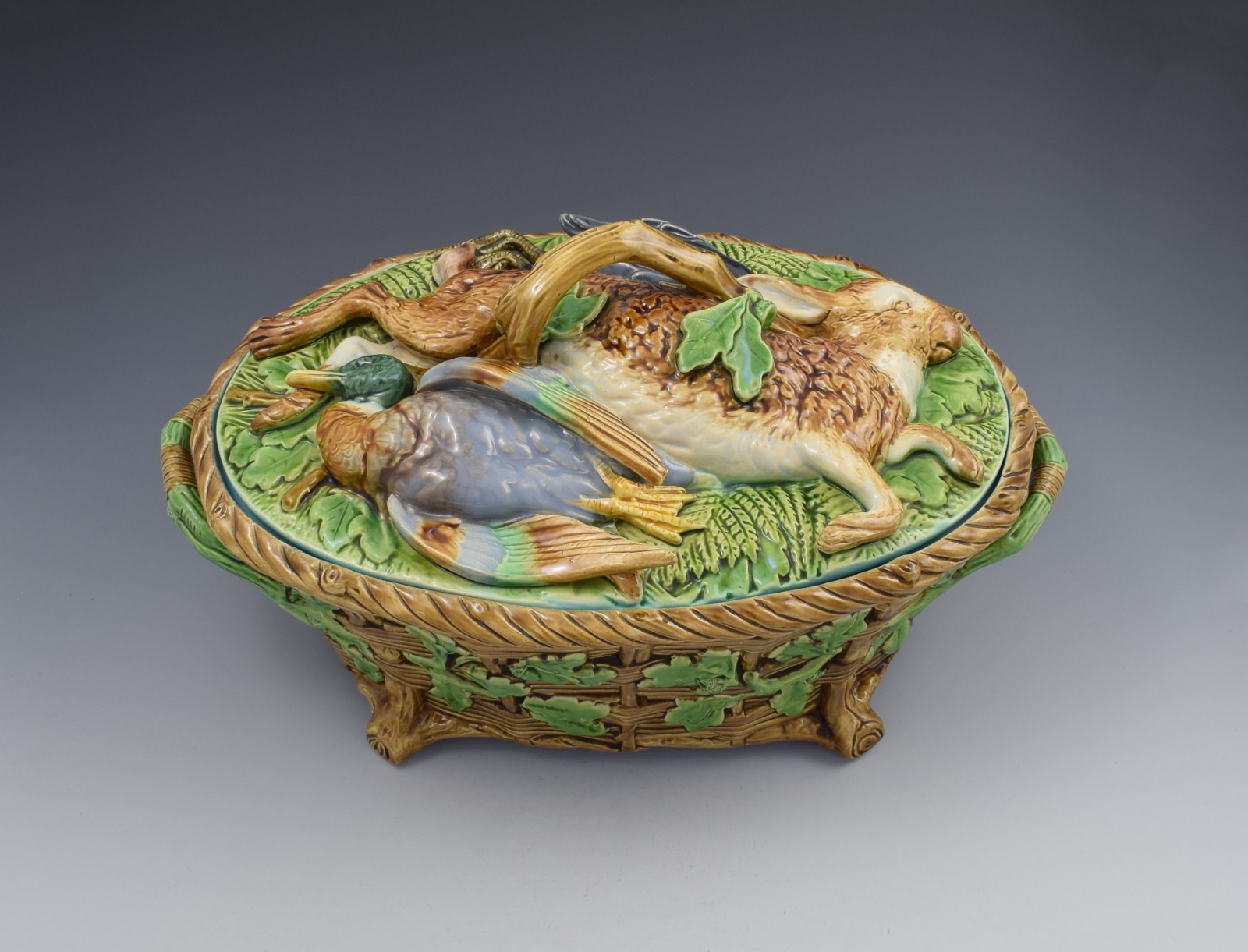Victorian Minton Majolica Mallard Blackbird Rabbit Game Pie Dish 1862