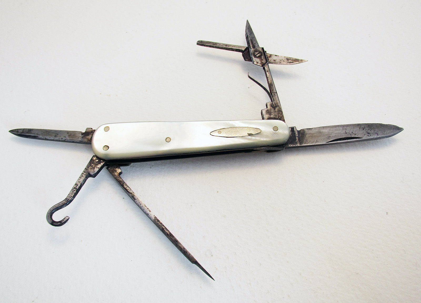 Victorian Mother of Pearl Carbon Steel Folding Fruit Penknife, Antique Lobster / Sportsman, Sheffield 1890