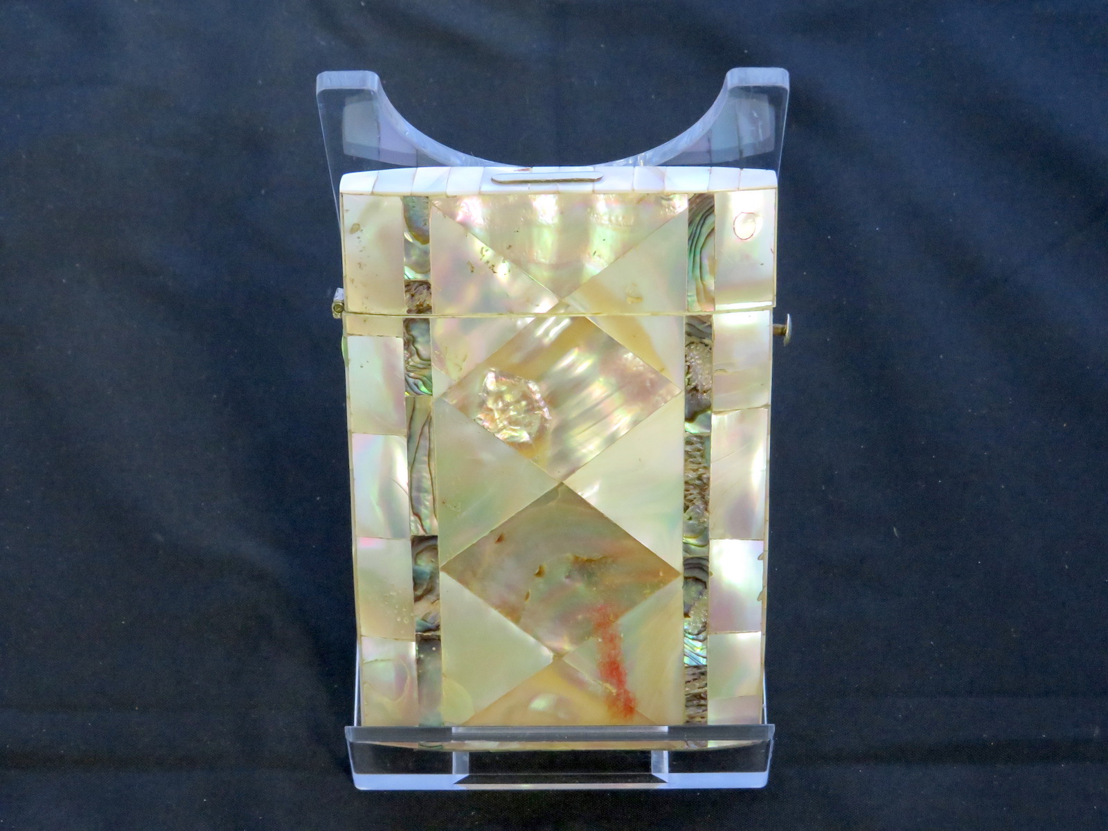 Victorian Mother of Pearl Card Case, Diamond Shaped Panels, 19th Century