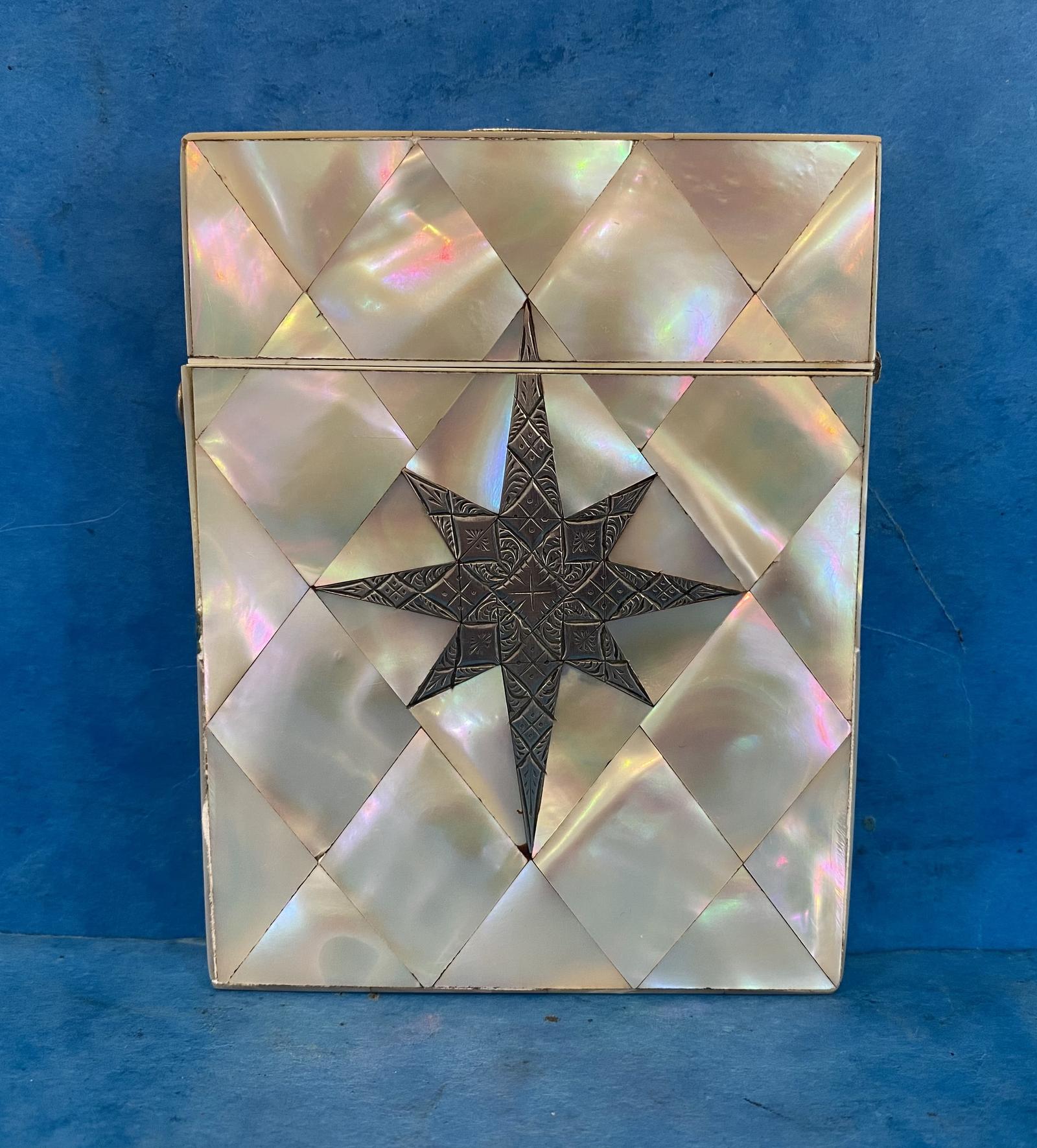 Victorian Mother of Pearl Card Case Featuring Silver Inlaid Star