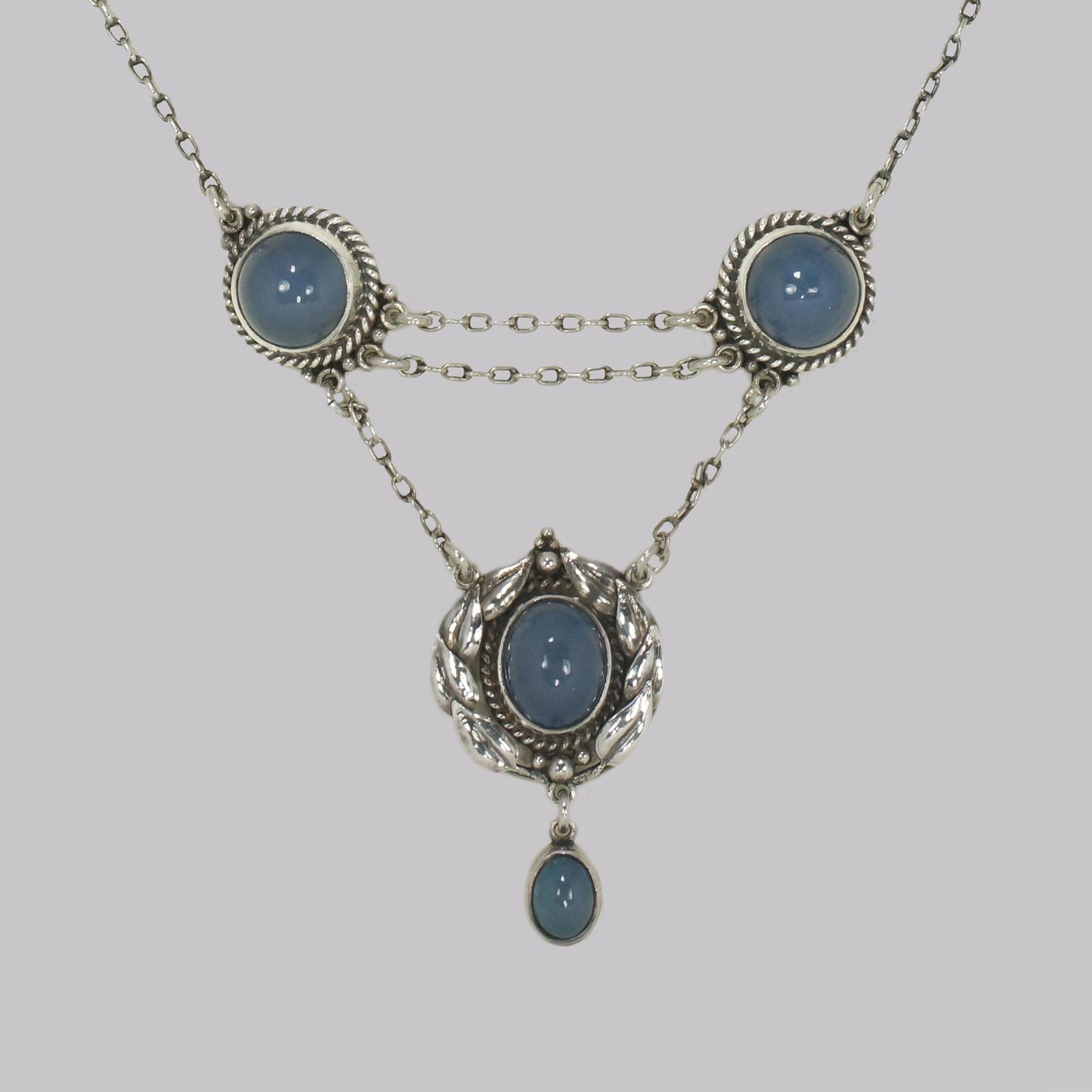 Victorian Necklace Edith Stewart Arts Crafts Silver Chalcedony Pendant ca 1900