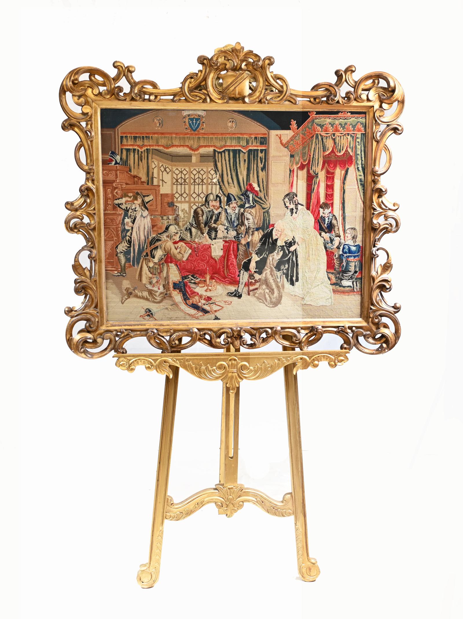 Victorian Needlepoint Tapestry Gilt Frame Cromwell 1840