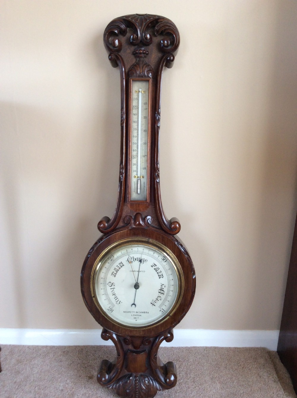 Victorian Negretti & Zambra Aneroid Barometer Solid Mahogany