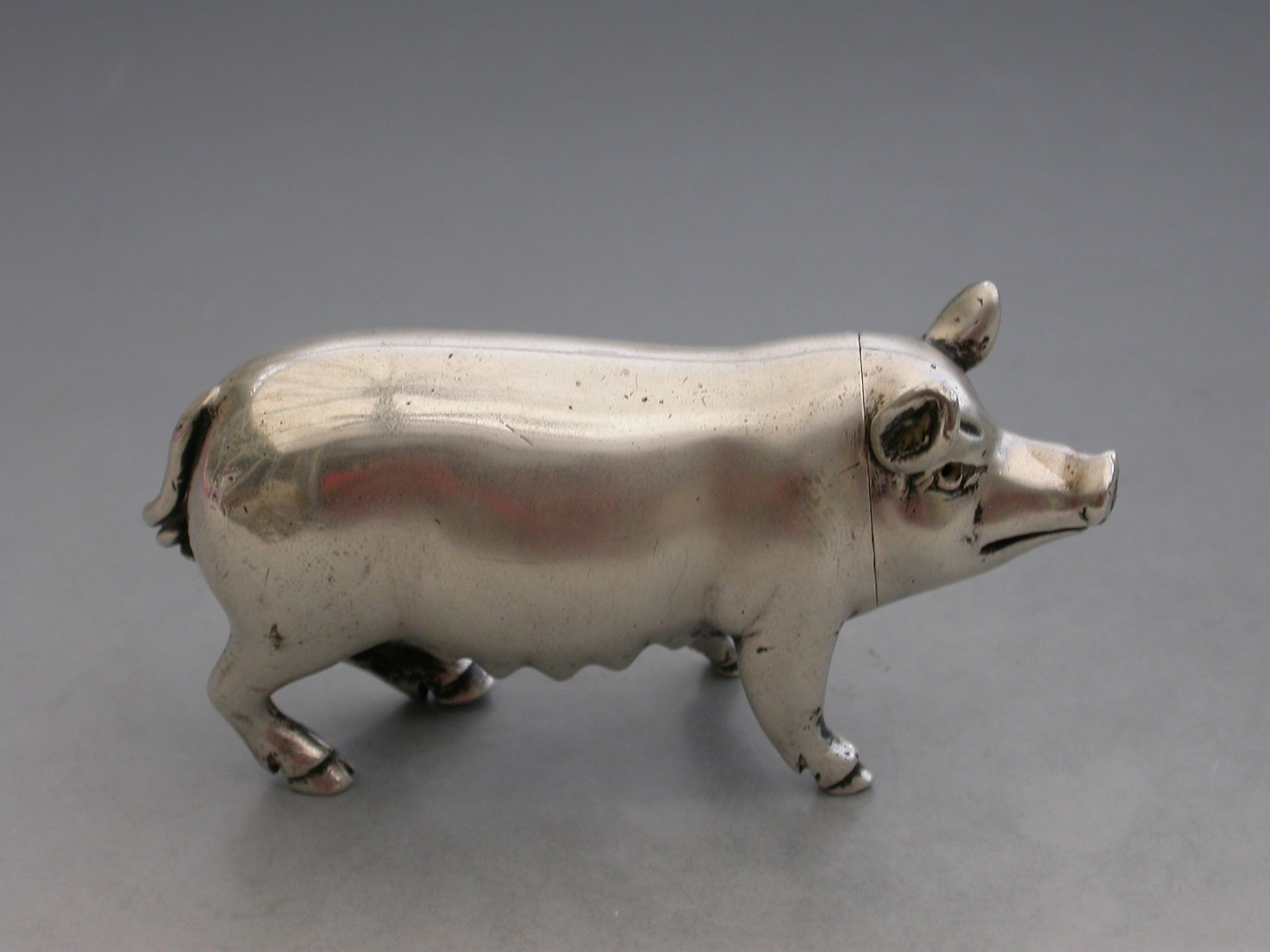 Victorian Novelty Cast Silver Pig Pepper Jane Brownett, London 1890