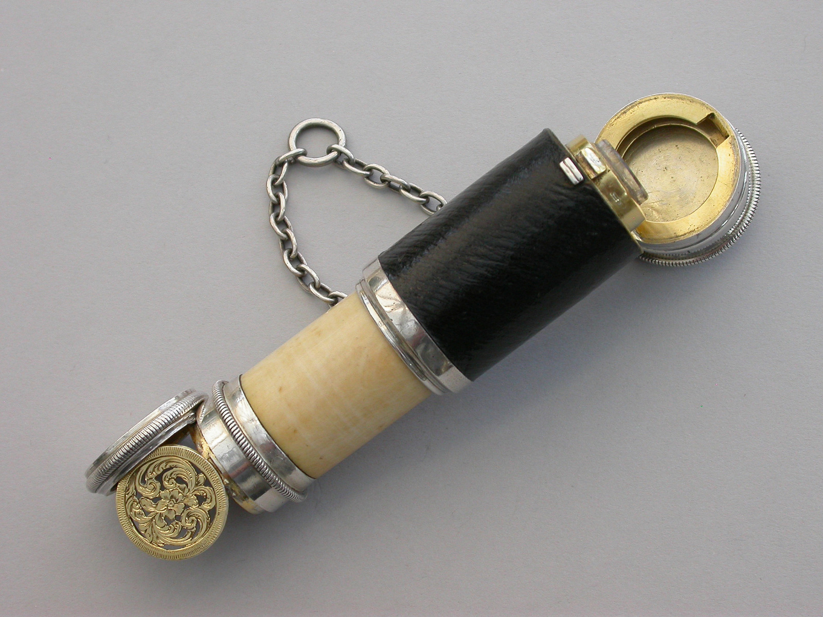 Victorian Novelty Silver Combined Scent Bottle Vinaigrette in the form of a Telescope, by Thomas Johnson, London, 1868
