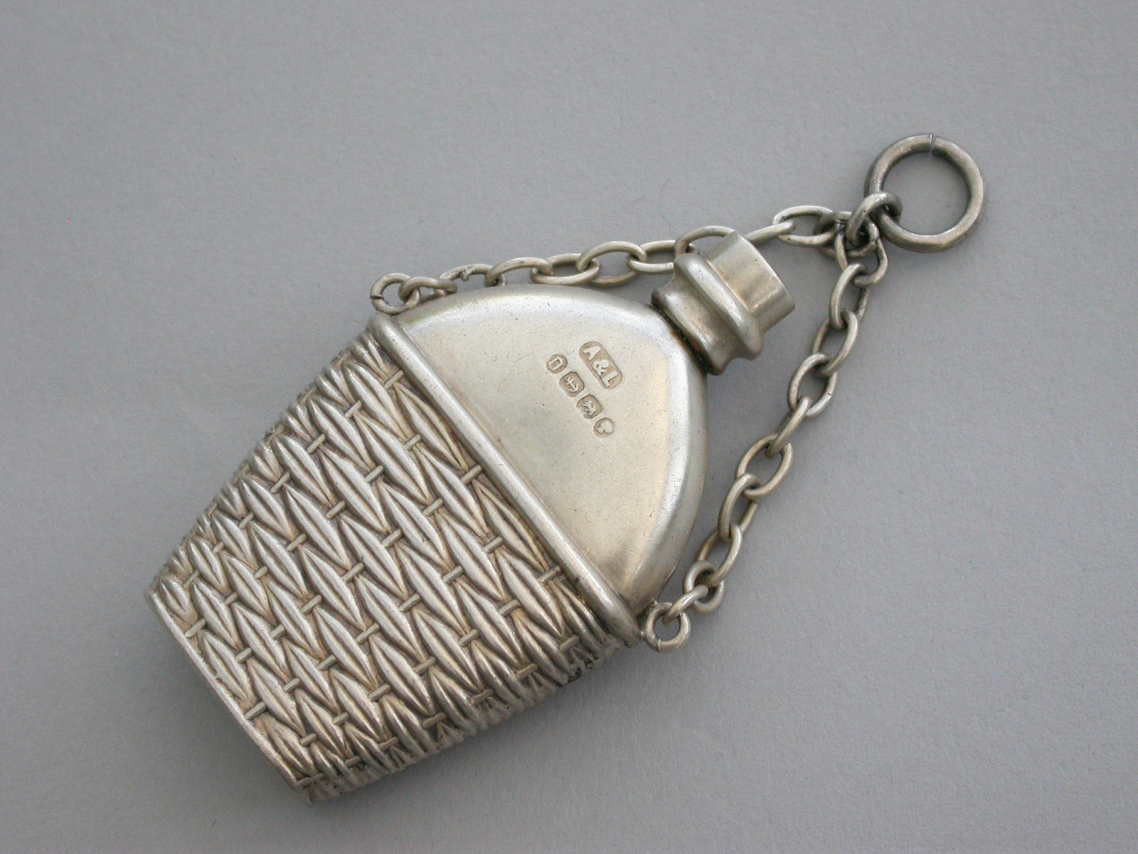 Victorian Novelty Silver Flask in Wicker Basket Scent Bottle by Saunders & Shepherd, Birmingham, 1889