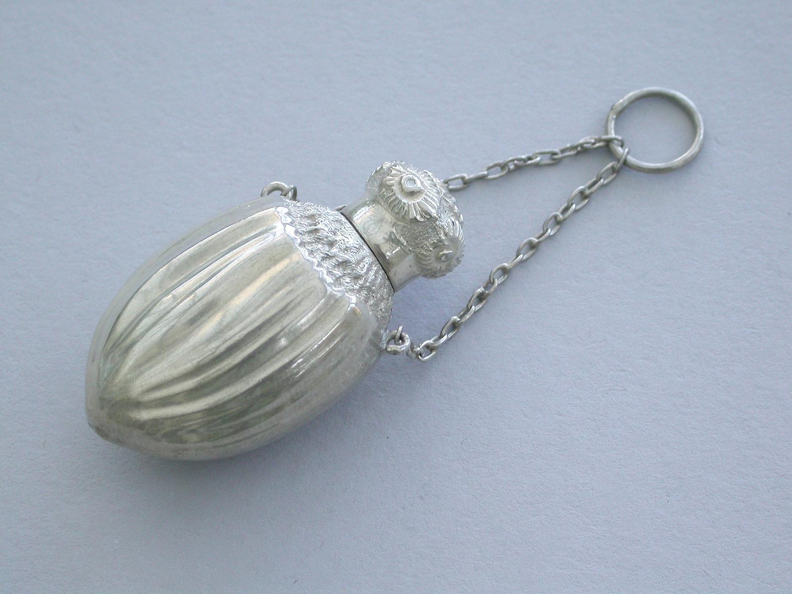 Victorian Novelty Silver Hazelnut Scent Bottle by Saunders & Shepherd, Birmingham, 1890
