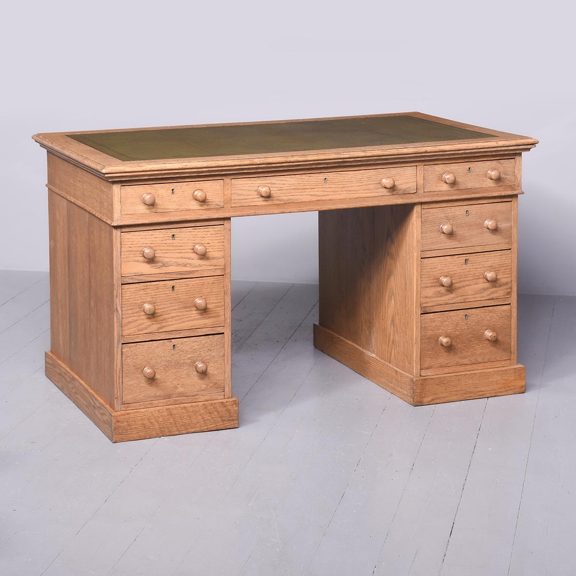 Victorian Oak 3 Part Pedestal Desk (1 of 7)