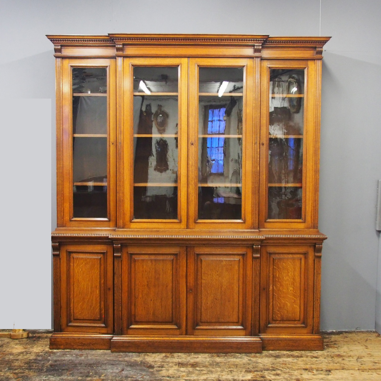 Victorian Oak 4 Door Breakfront Bookcase (1 of 1)