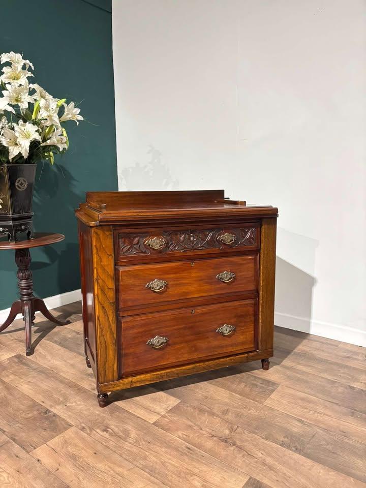 Victorian Oak and Carved Walnut Chest of Three Graduated Drawers