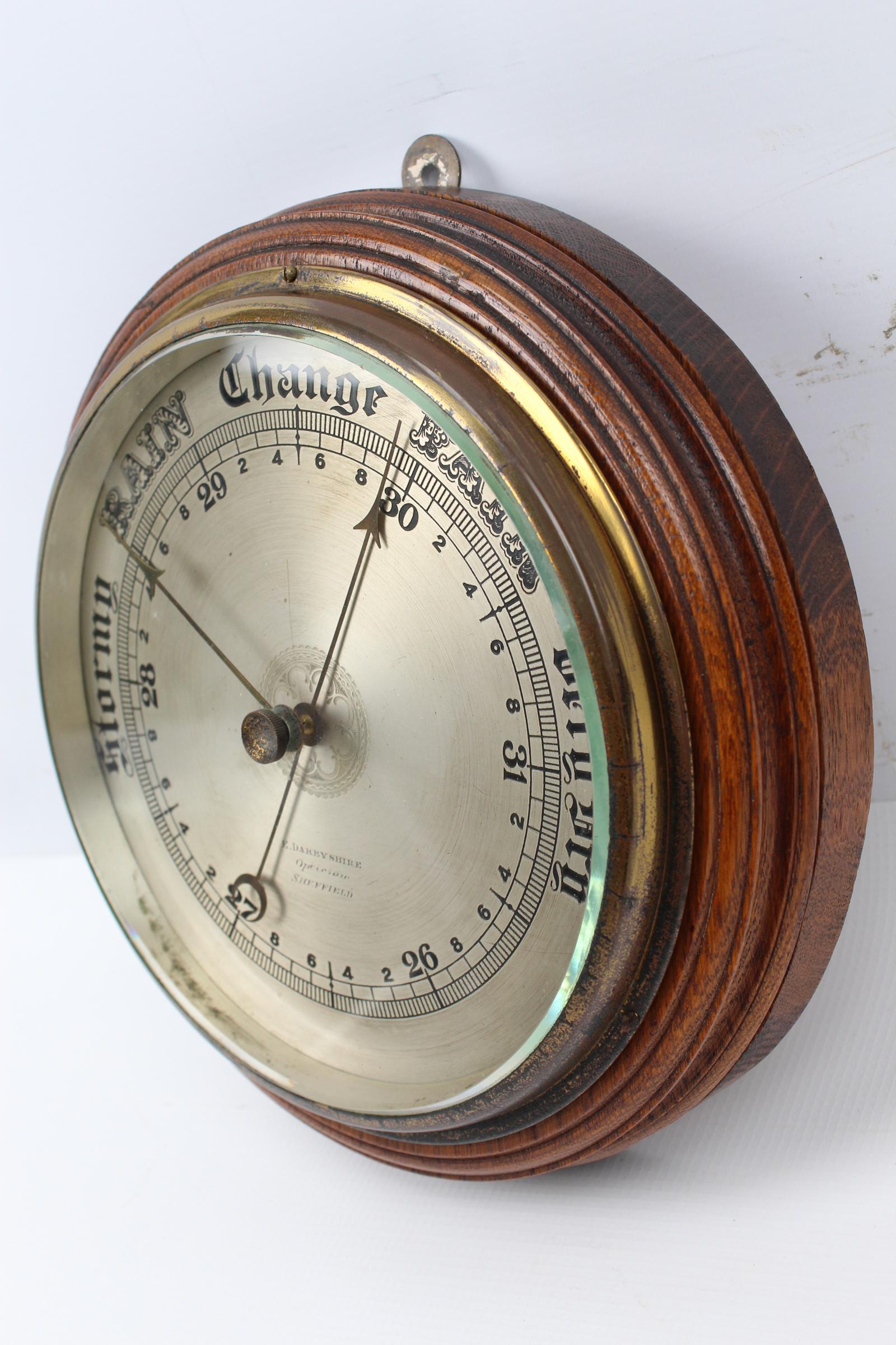 Victorian Oak Circular Aneroid Barometer (1 of 13)