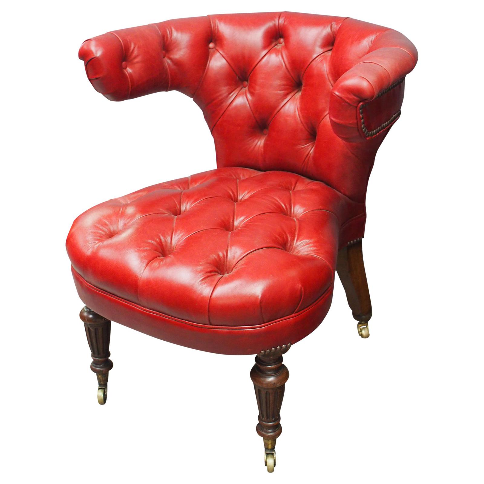 Victorian Oak & Crimson Leather Cockfighting Chair