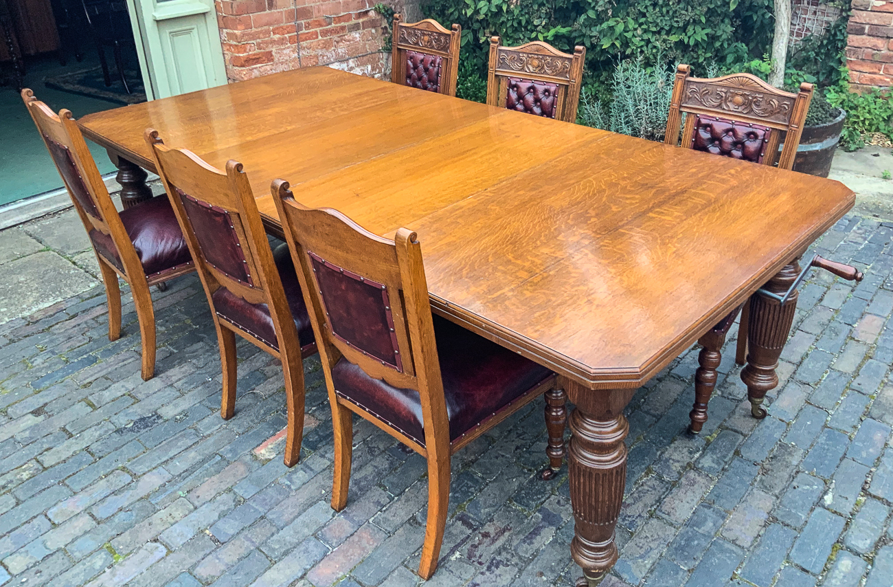 Victorian Oak Extending Dining Table & 6 Matching Dining Chairs