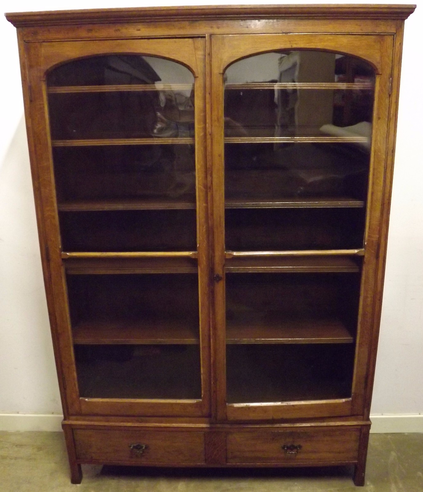 Victorian Oak Glazed Bookcase c.1890 (Hobbs & Co. Lock)
